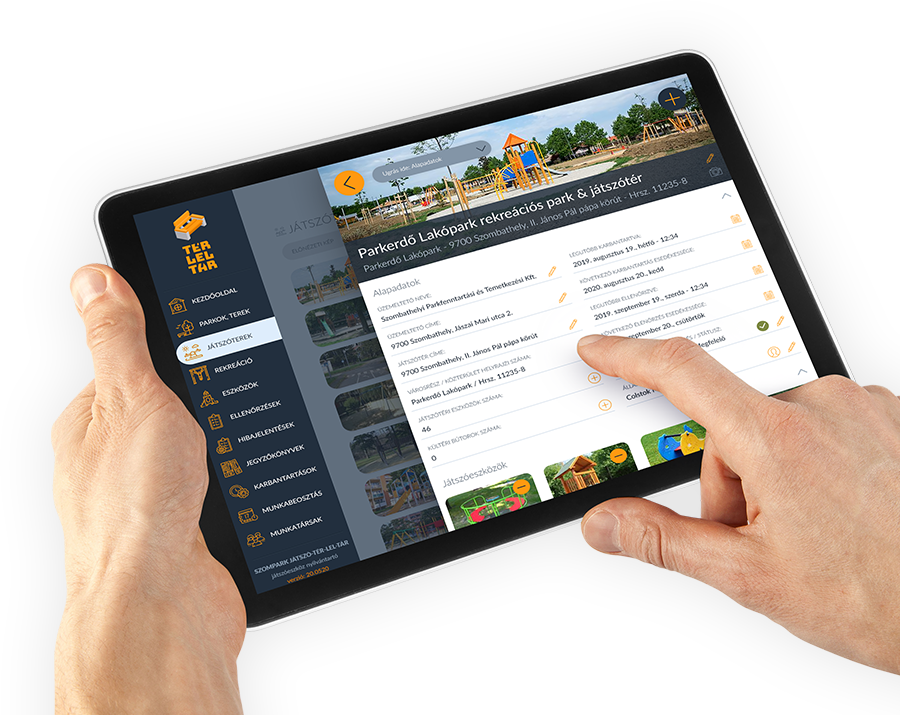 Spacetify is a unique online registration system, a web-based application that provides a record of each piece of equipment in public spaces, playgrounds and fitness parks, their periodic and extra repairs, providing the administrative background for inspections and maintenance.